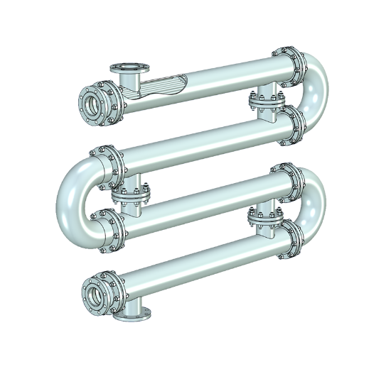 Данные подогреватели состоят из кожухотрубных секций. Они соединены в блоки, заданной теплопроизводительности, с помощью соединительных калачей. Каждая секция подогревателя представляет собой неразборный блок. Блоки состоят из корпуса, трубных досок, трубок поверхности теплообмена. Корпуса соединяются между собой штуцерами. Благодаря разъемному исполнению секций удобно осуществлять организацию производства, транспортировку и сборку.